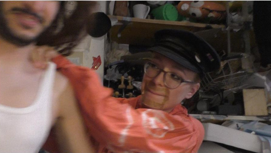 | gepeitschte Wachen in den Knastvogel-Tauen: Vera Rudolph, Peter Haury, "Sendino-Sr."-Pilot: Vera Rudolph