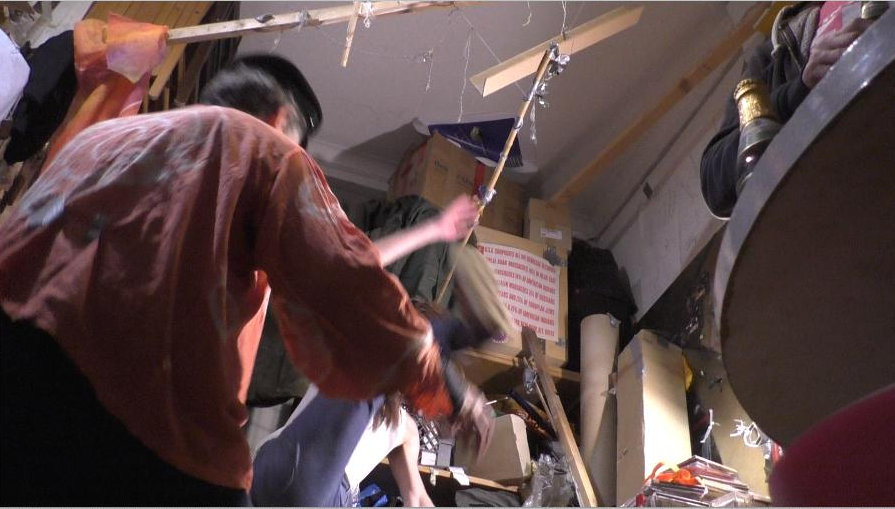 | In Rolladenrolle purzelender "Sendino-Sr."-Killer: Benedikt Waldmann, Animation sich entrollende Schrottrolladenrolle: Christian Eickhoff