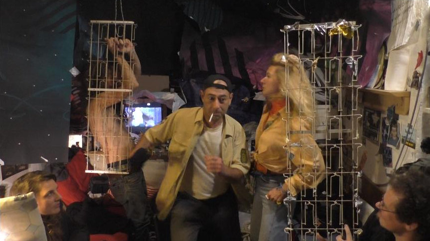 | erschöpfte "Aufseher Bishop" im Käfig: Amelie Pyta, Animation Käfigpolster: Donate Kluxen-Pyta