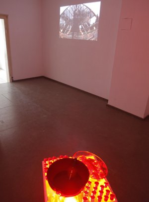 Der Evolutionsrat, eine von Marco Schmitt gegründete Happening-Gruppe, bestehend aus Ulrike Buck und Nadja Stübiger, zeigt ein rituelles Happening vom 11.11.11, bei dem in der Skulptur "Tor der Hoffnung" von Dan Graham der Geist des Cro Magnon Menschen wieder geboren und gleichzeitig geopfert wurde. Das "Tor der Hoffnung" verwandelte sich in eine "Höhle der Hoffnung". Der Spirit der Installation, verschiedene spirituelle, rituelle und geopferte Objekte und ein spezielles Höhlengetränk verwandeln den Betrachter in einen Zustand transzendentaler Wahrnehmung. Das Publikum wird zu einem Zeitreisenden und erlebt die Evolution in nicht linearen sondern intuitiven Richtungen. Die Frage bleibt beim Betrachter: Ist es Evolution, Noitulove, Institution oder Noitutitsni? Freitag, 20. Juli, 19.00 Uhr |