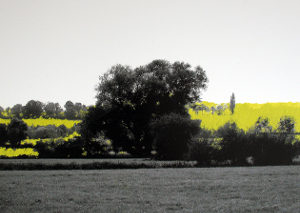(english version) In der Bildinstallation werden mit Farbe bearbeitete (Landschafts-) Fotografien und gemalte Bilder in einen szenischen Zusammenhang gesetzt.